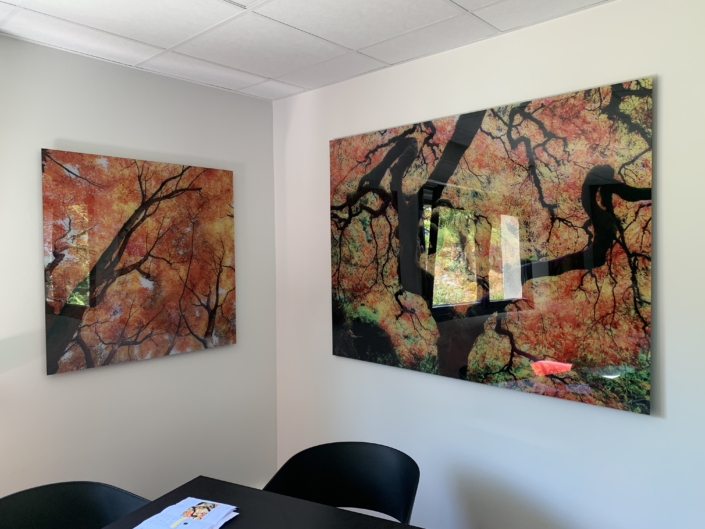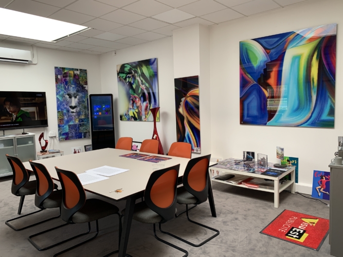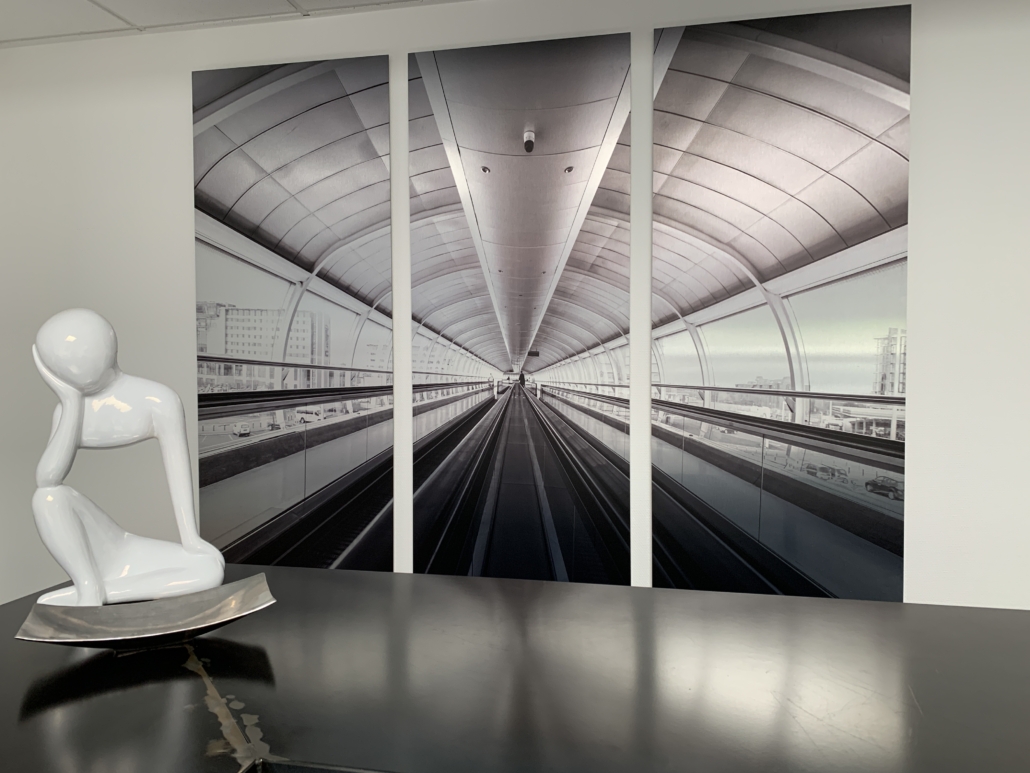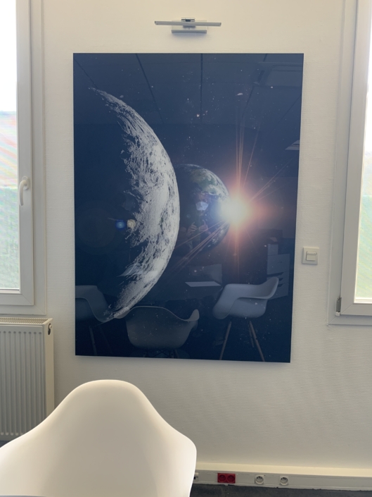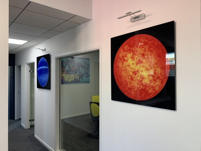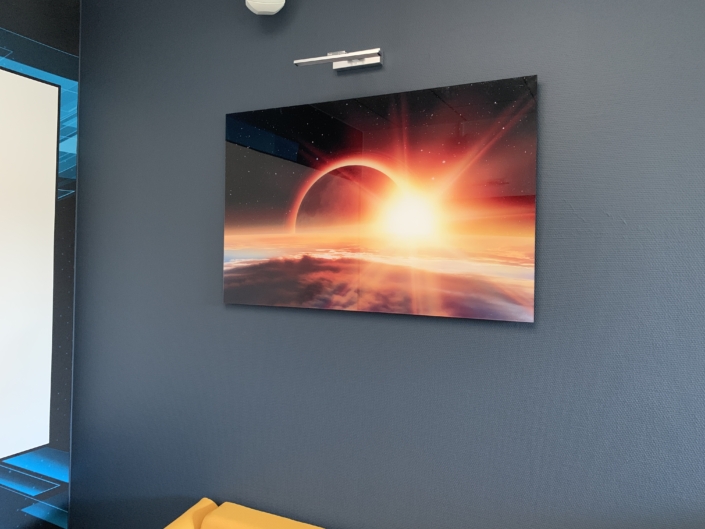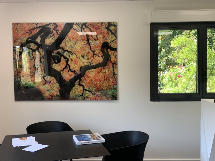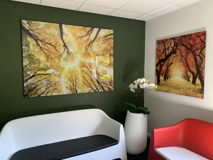 Impression UV avec vernis et encre blanche à plat et en rouleau jusqu’à 3.20 m de laize, impression en sublimation 3.20 m ou impression Latex, nous maitrisons en interne la production, la finition et le montage.